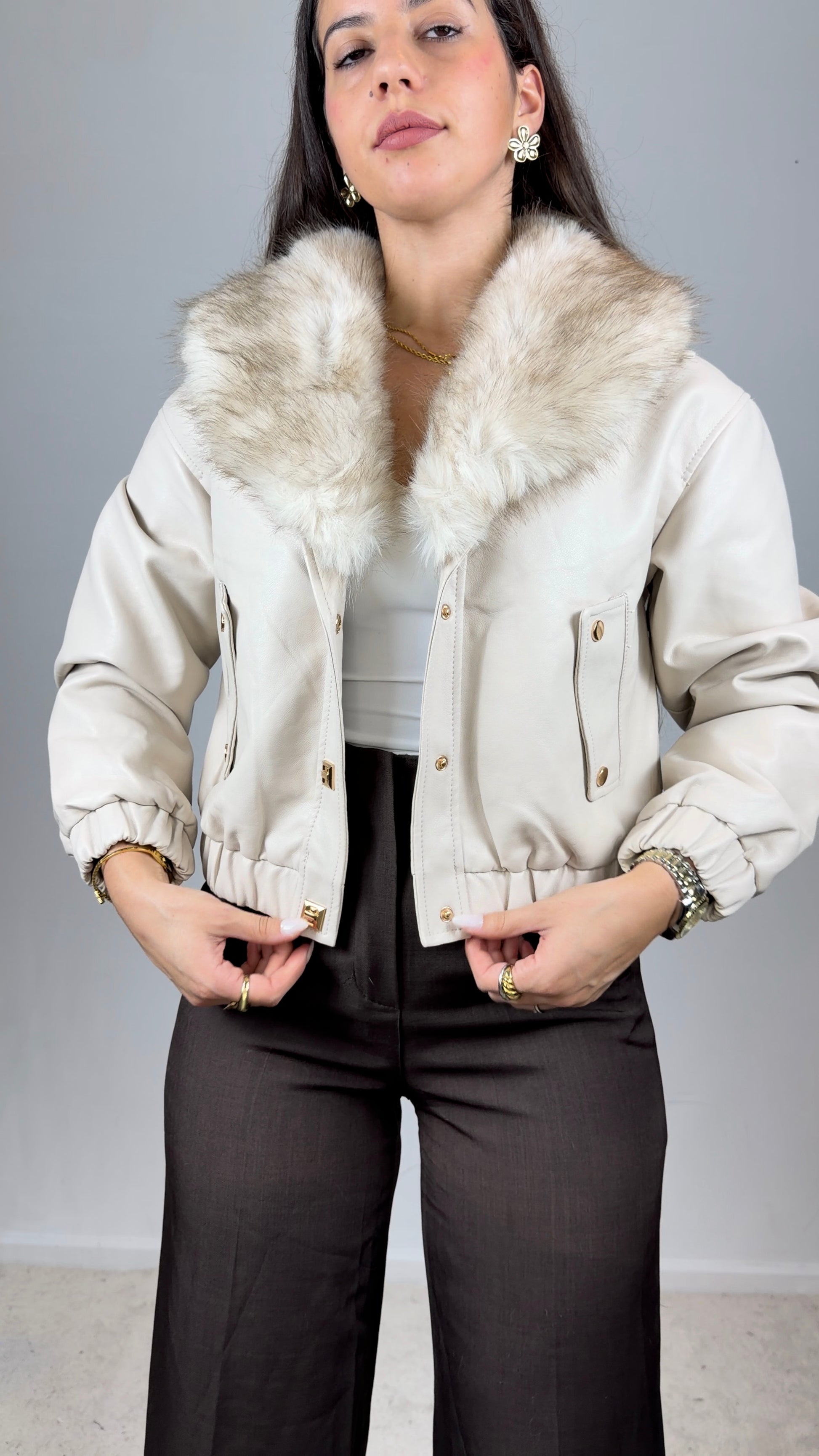 Casaco em ecopele com carda por dentro ! Casaco impermeável super quentinho! O pêlo da gola é removível!