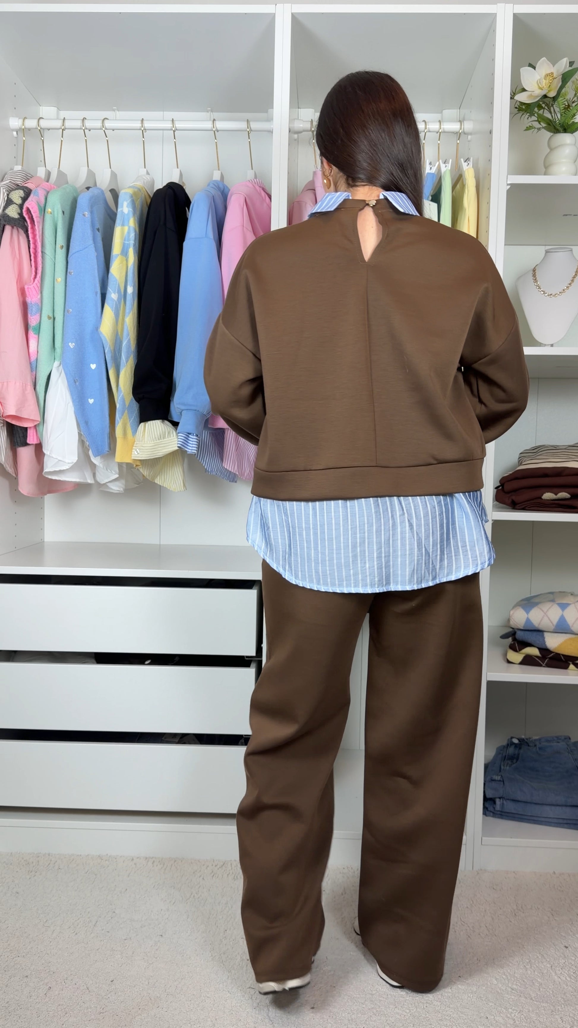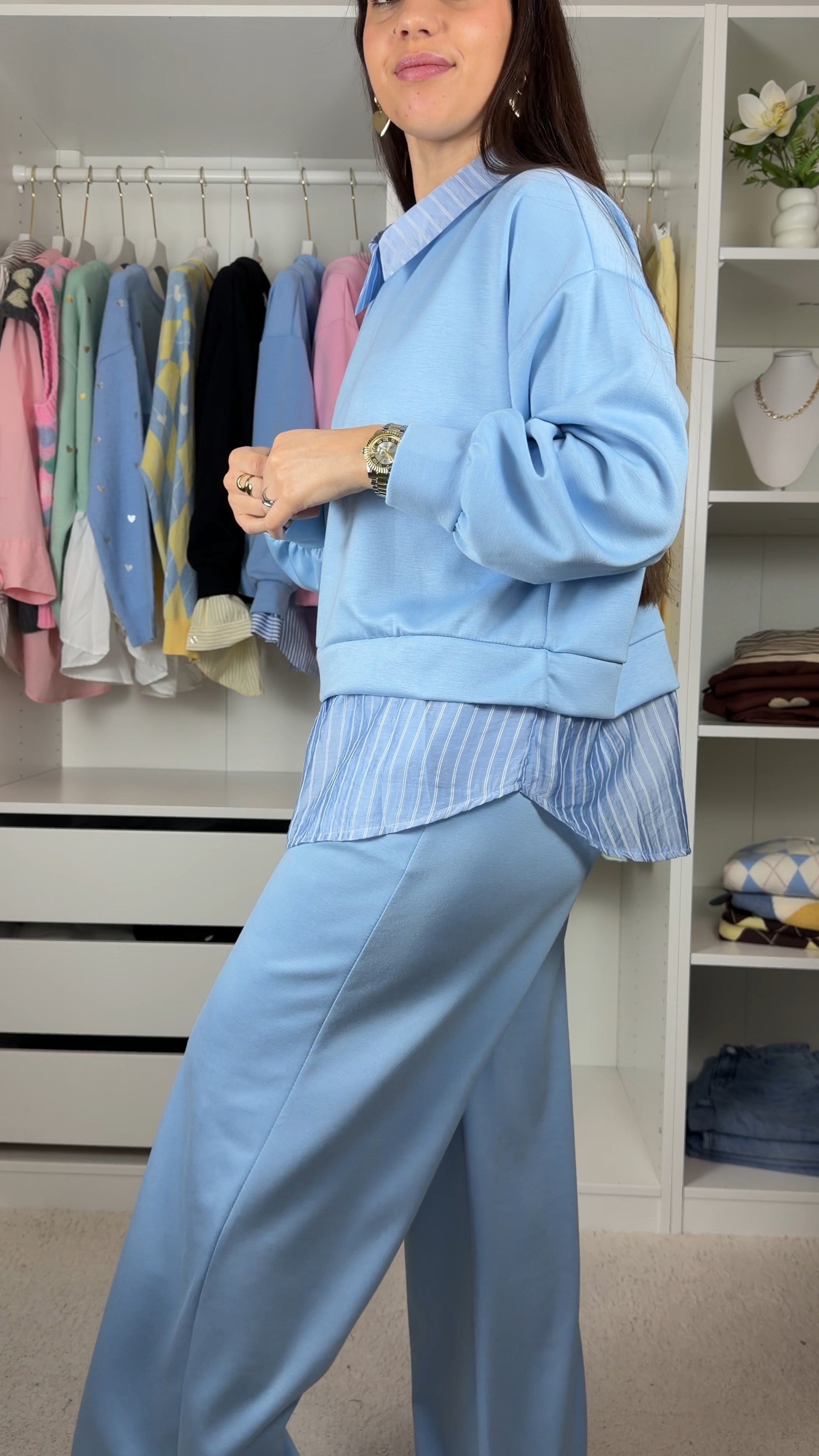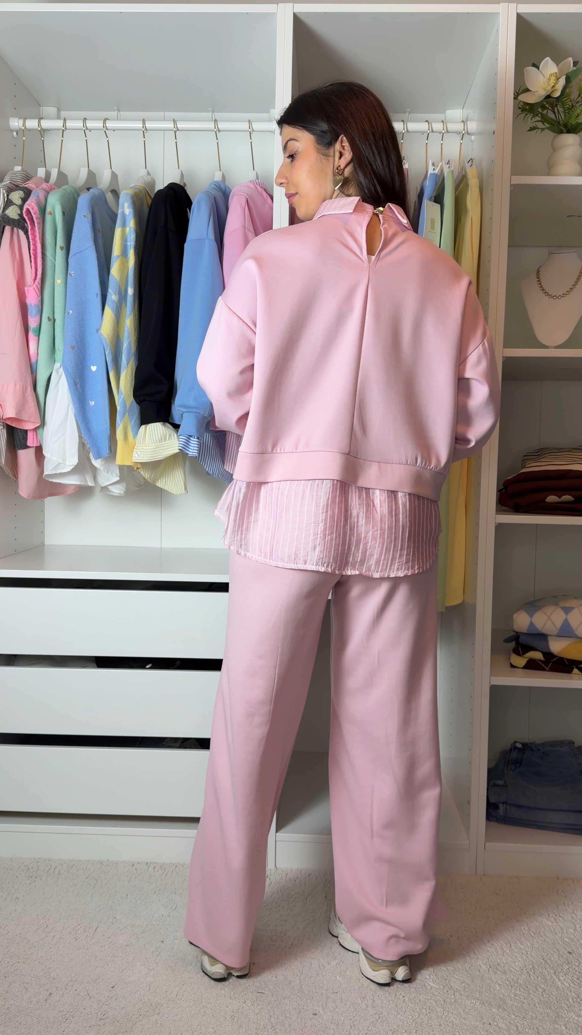 Conjunto fato de treino com pormenor de camisa as riscas