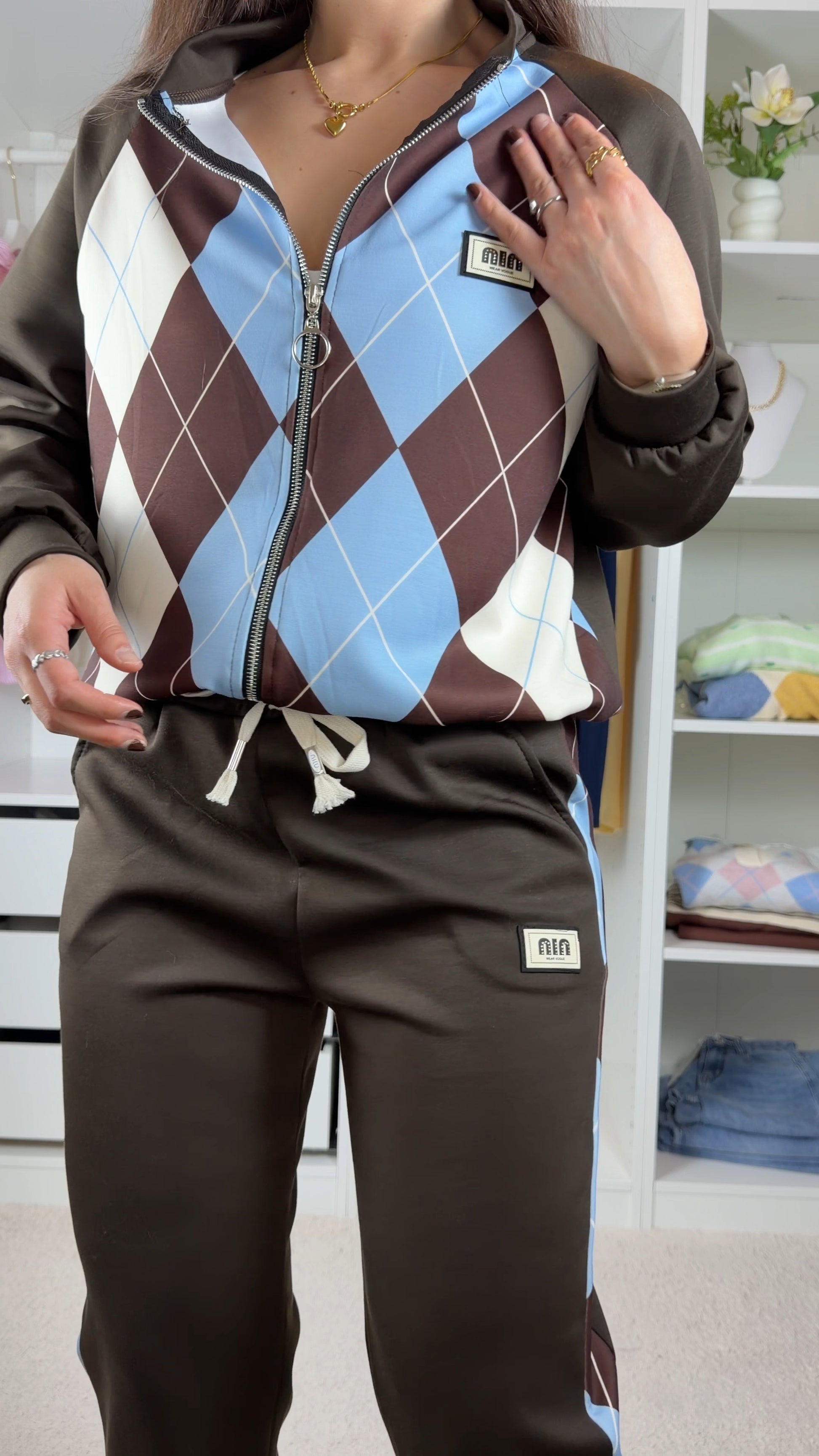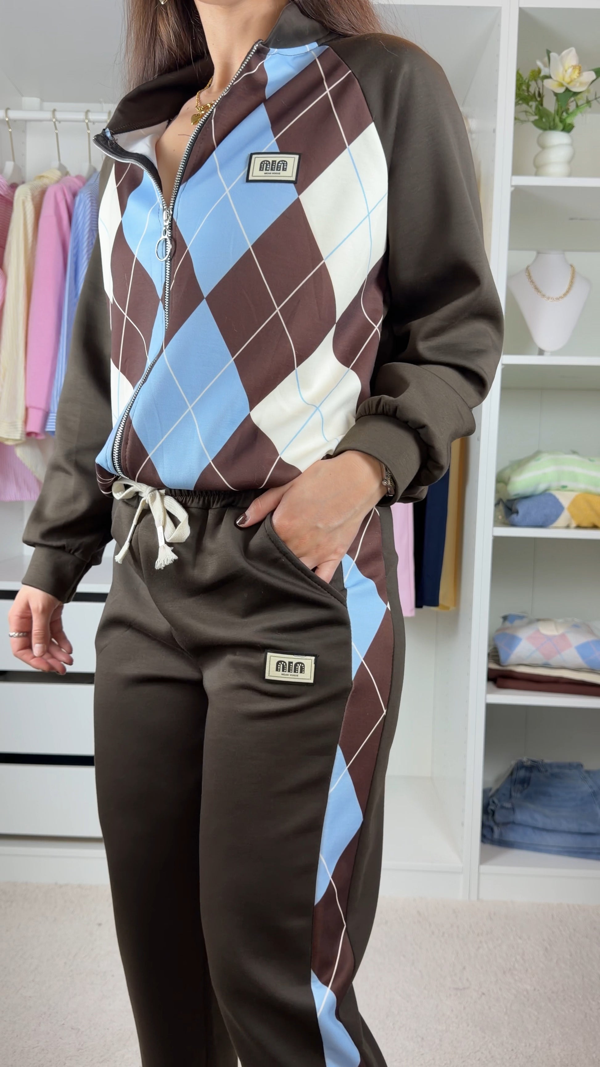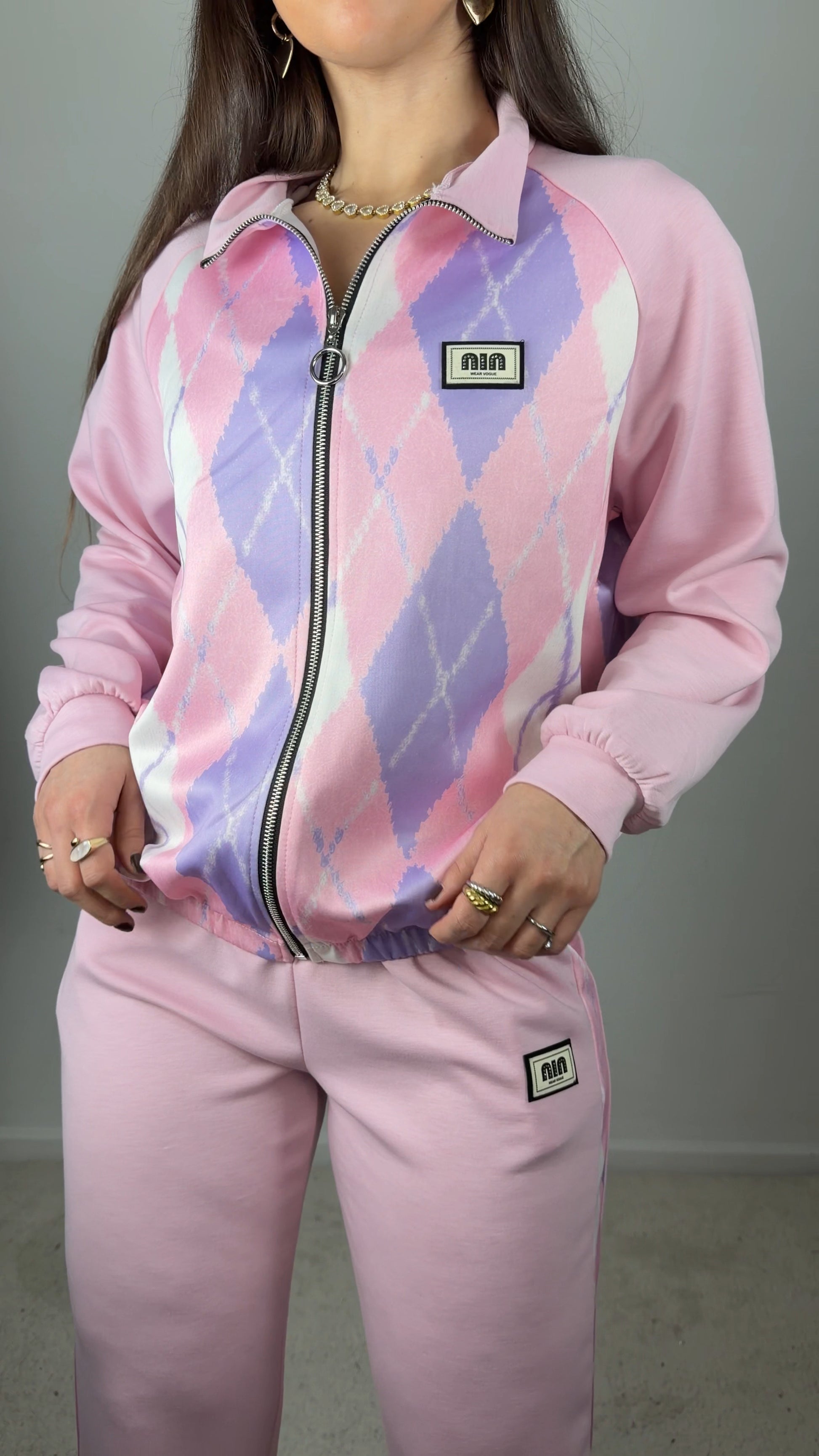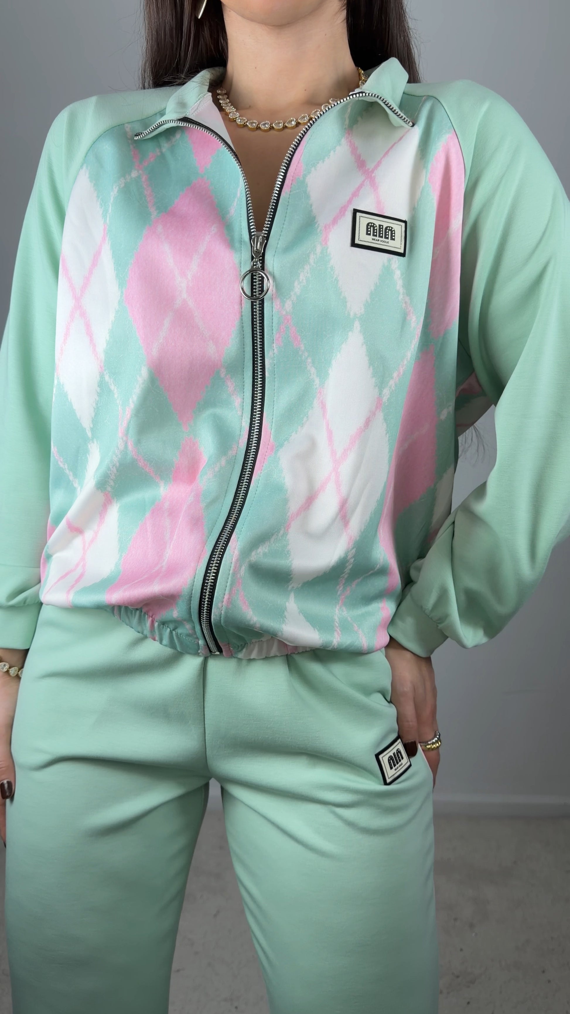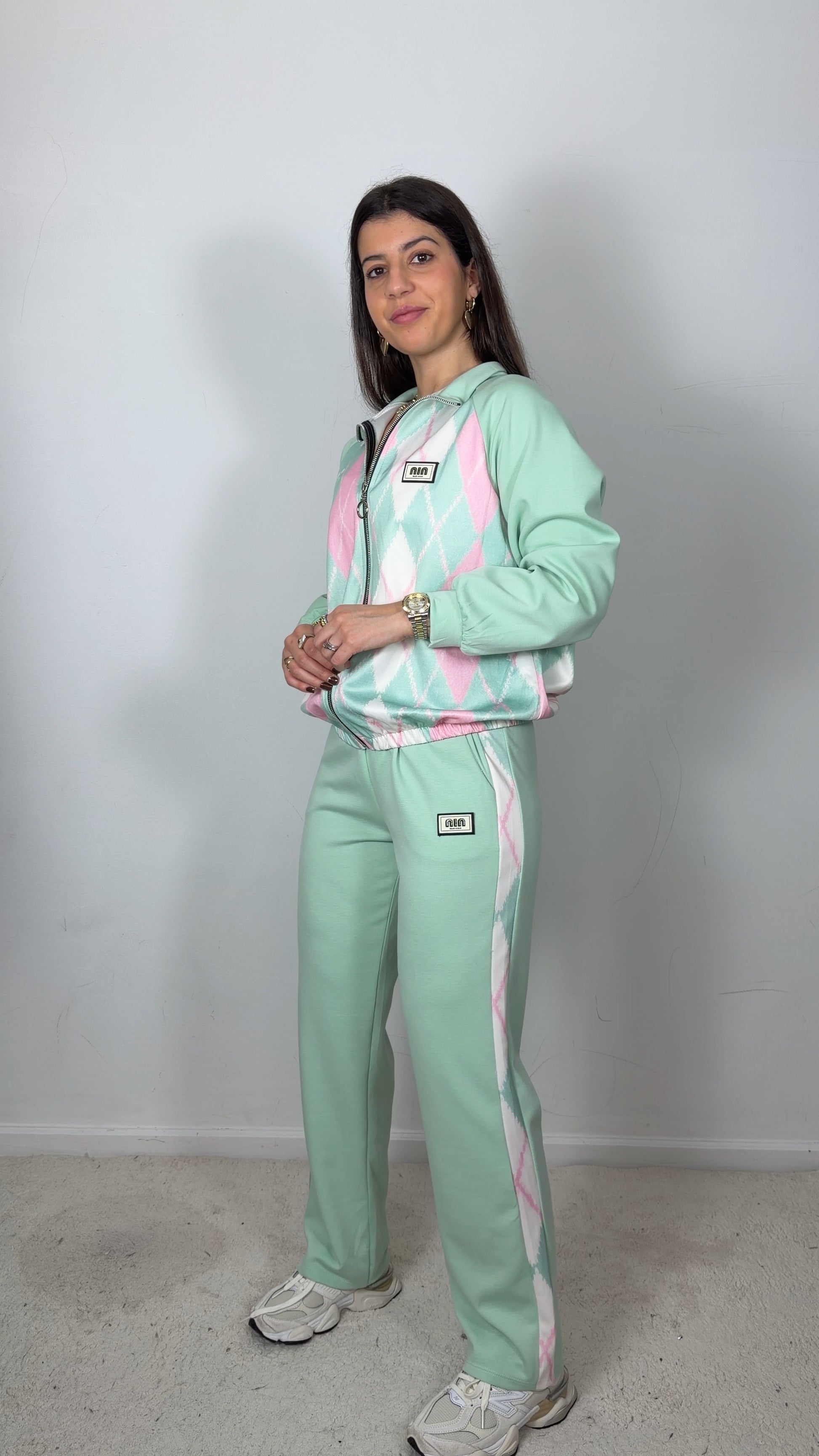 Conjunto fato de treino c/padrão de losangos